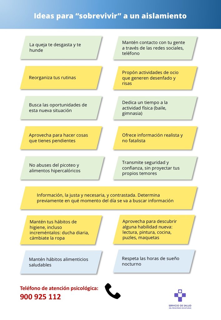 Ideas para “sobrevivir” a un aislamiento y teléfono de atención psicológica en Asturias
